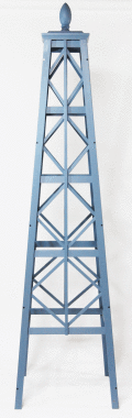 木製オベリスク、ピラミッドシリーズの中で最もフットプリントの大きなオベリスクです。デザインは菱形をデザインした人気のデザインです。 本体はプラスドライバー1本で簡単に組み立てできます。 最上部フィニアルは4種類からお好きなデザインをお選びください。 カラーも6種類からお選びいただけます。(写真のカラーは「ストーンブルー」です。)